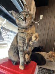 | 性格 | ちょっぴり警戒心強めの慎重派。指先挨拶からゆっくり行くとスリスリしてくれます♡日中はのんびりマイペースに寝てる事が多いですが、夕方から座ってる人のお膝をこっそり狙ってます…!セス副部長がだ〜い好きでよく一緒に居ます♡携帯やパソコンに興味津々なIT系、そしてよくジト目で見つめてくる何考えてるのか分からない不思議な子。おもちゃはレーザーポインターが大好きです♡ |