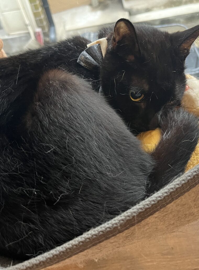 | 性格 | 風邪が慢性化してしまって左目は癒着してしまってますが、生活に支障はございません!人間大好きで、お膝の上に座ったり、甘える時は全身でスリスリきてくれて、撫でるとでんぐり返しを披露してくれます♡ちょっぴり独占欲強めで、他の子に「僕の番だぞ」アピールしちゃう時も。もふもふのボールおもちゃが大好きな小柄な男の子。 |