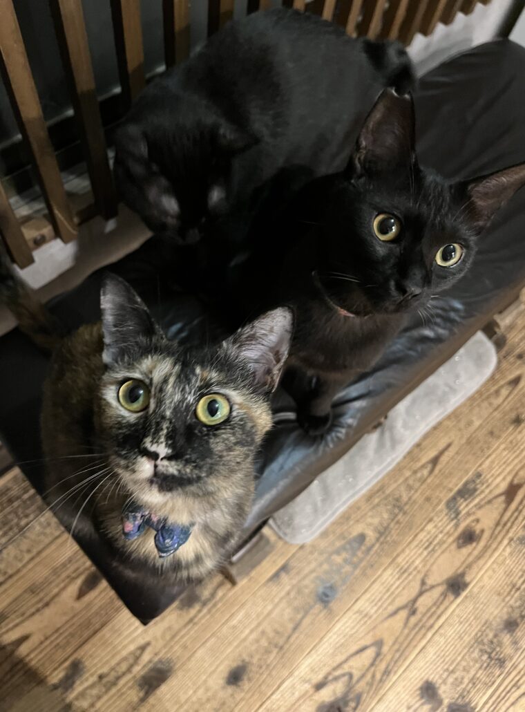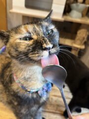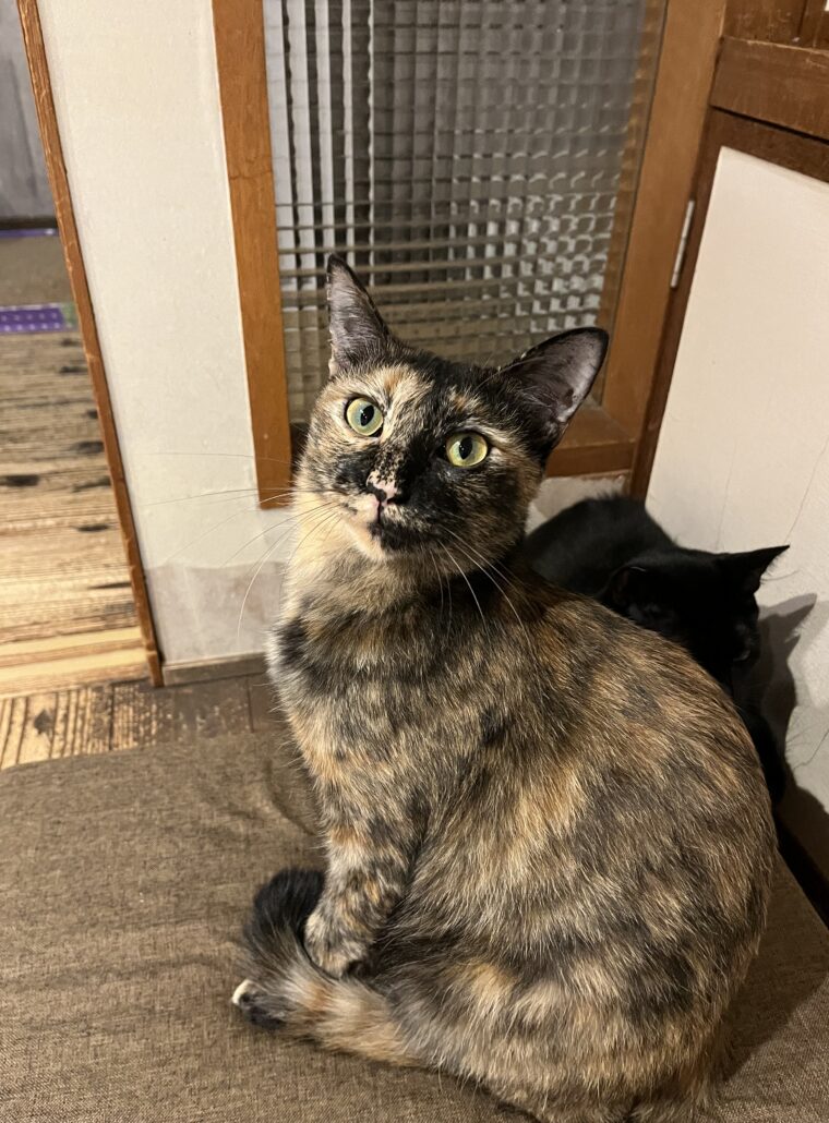 Name 音 Data 性別女の子 毛色サビ 生年月日2022年 血液検査猫白血病【陰性】猫エイズ【陰性】 去勢手術済 マイクロチップ済 性格お名前呼ぶと「わっ!わっ!」と可愛い声でお返事してスリスリしにきてくれる超人馴れ抜群猫さん。黒猫の【樂くん】のお母さん。お膝の上でまったり、でも独占欲が強いので撫で撫でのときはあんまり他の子見ないでね!窓の外、押し入れの中が気になる好奇心旺盛さん。おもちゃを見るとハンターに!おやつには一直線!