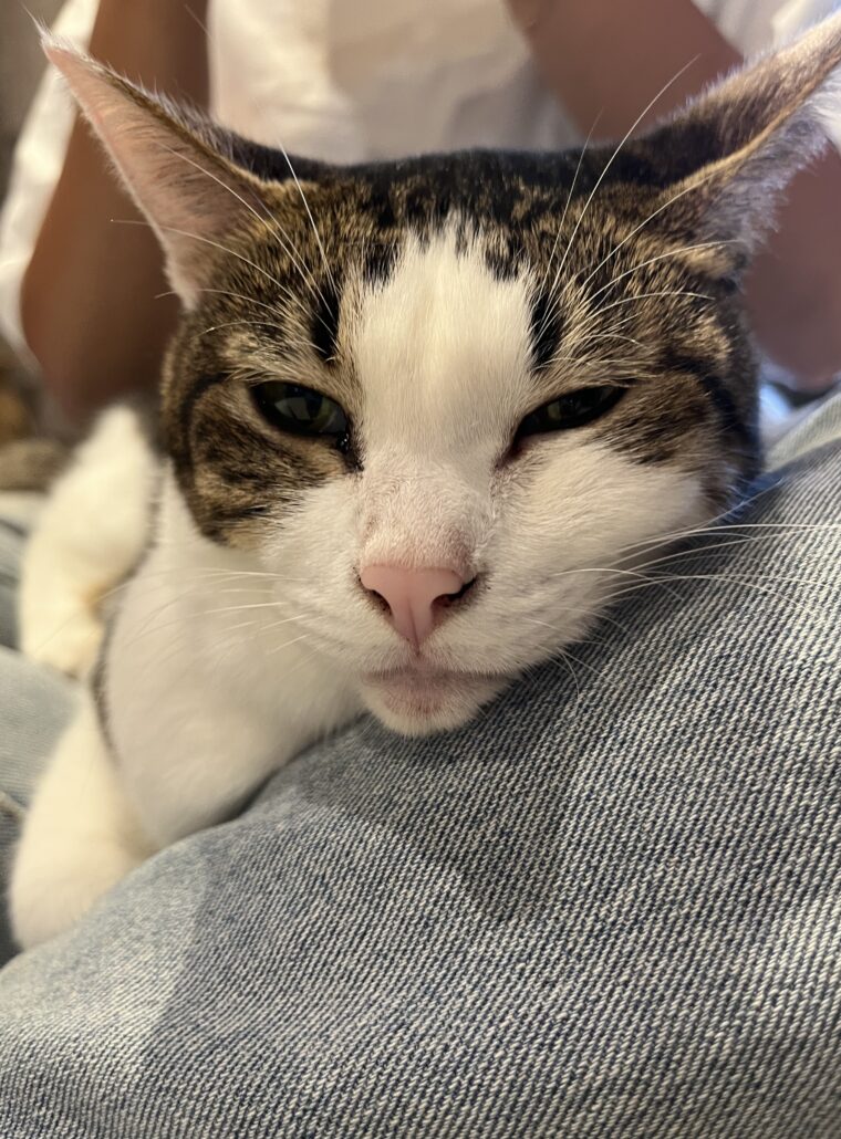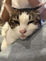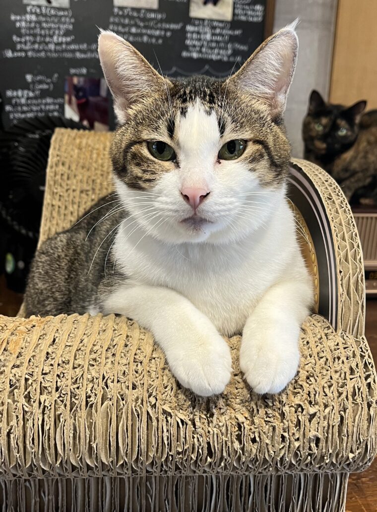 | 性格 | 初対面の人とか関係なく「私のもの!」と一直線にお膝に乗りに来る人間超ベタ慣れのシニア猫さん!おやつもおもちゃも貰えるなら、遊んでくれるならと控えめで、本当に甘えん坊に全振りされた性格です。お膝にいる時は独占欲強めなので、もなかだけを見てあげてください♡ご機嫌のときはカーペットでころころしています♪ |